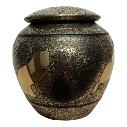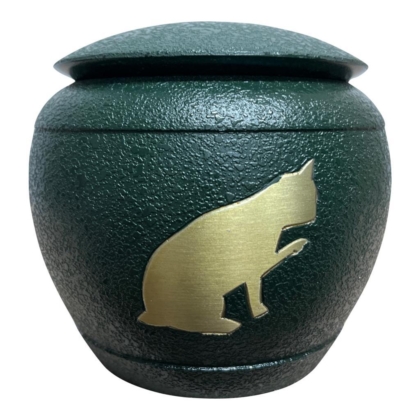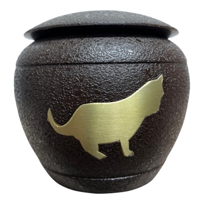 $58.600 IVA IncluidoÁnfora de bronce con imágenes de gatito para mascotitas pequeñas de hasta 15 kilos. Medidas: 15 cm de alto